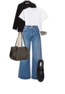 Functionally, most capsule wardrobes are built from a mix of core categories: tops, bottoms, layers, dresses, shoes, outerwear, and accessories. Within those, Mena points to a few tried-and-true staples: a white button-down, a classic blazer, a great pair of jeans, a little black dress, a versatile knit, neutral flats, and a structured coat.